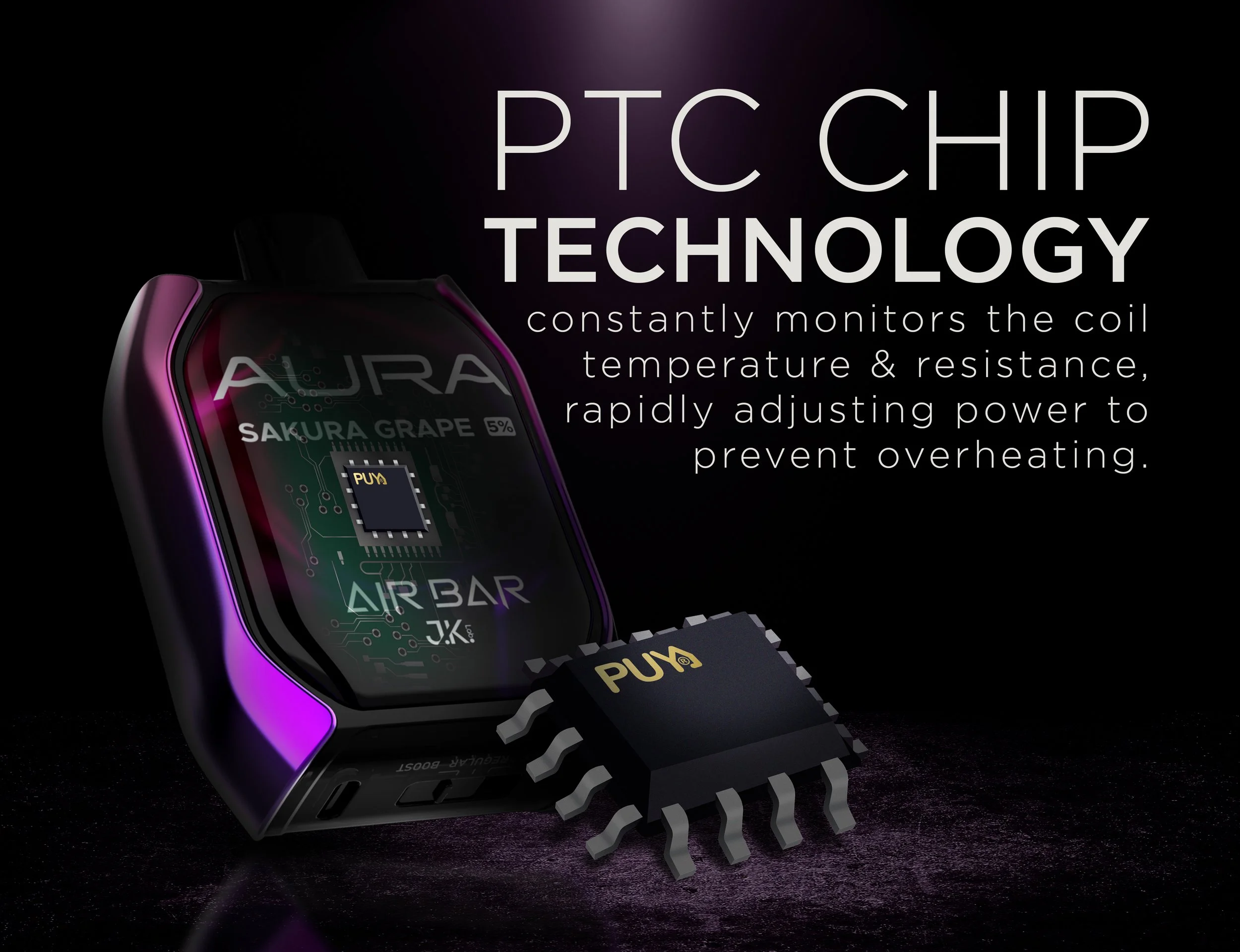 Packed with 27ml of e-liquid AURA has a taste that resonates with each user’s personality—from classic to bold. USB Type-C fast rechargeability ensures that AURA is always ready when you are, making it ideal for users on the move who value both power and portability. Built with an advanced Precision Temperature Control (PTC) chip for optimal performance, AURA offers consistency, safety, and satisfaction with every use.
