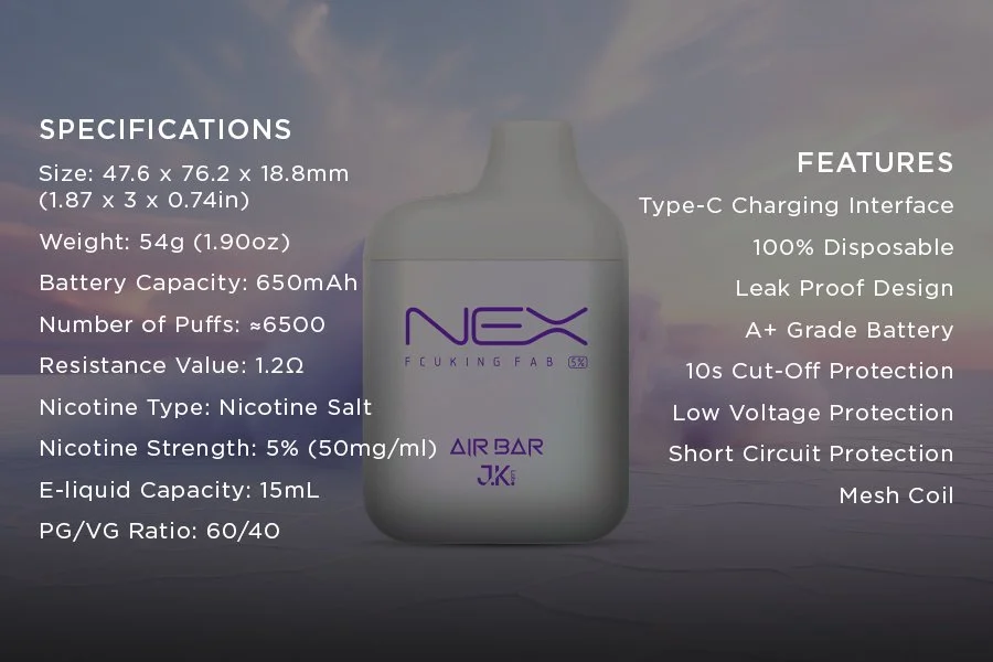 Introducing the Air Bar Nex Pearl Edition, a masterpiece of design and innovation. This exquisite device boasts a captivating iridescent pearl shell finish that shimmers with elegance. Its sleek and soft design provides a comfortable and luxurious feel in your hand. Experience vaping redefined with an impressive 6500 puffs and indulge in a symphony of flavors with 11 captivating new additions to the Nex lineup. The Nex Pearl Edition also features convenient Type-C rechargeable functionality, ensuring you can savor your vaping experience for longer. This isn't just a vape; it's a statement of style and sophistication.