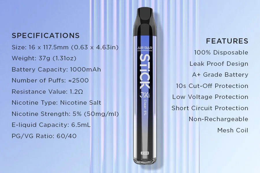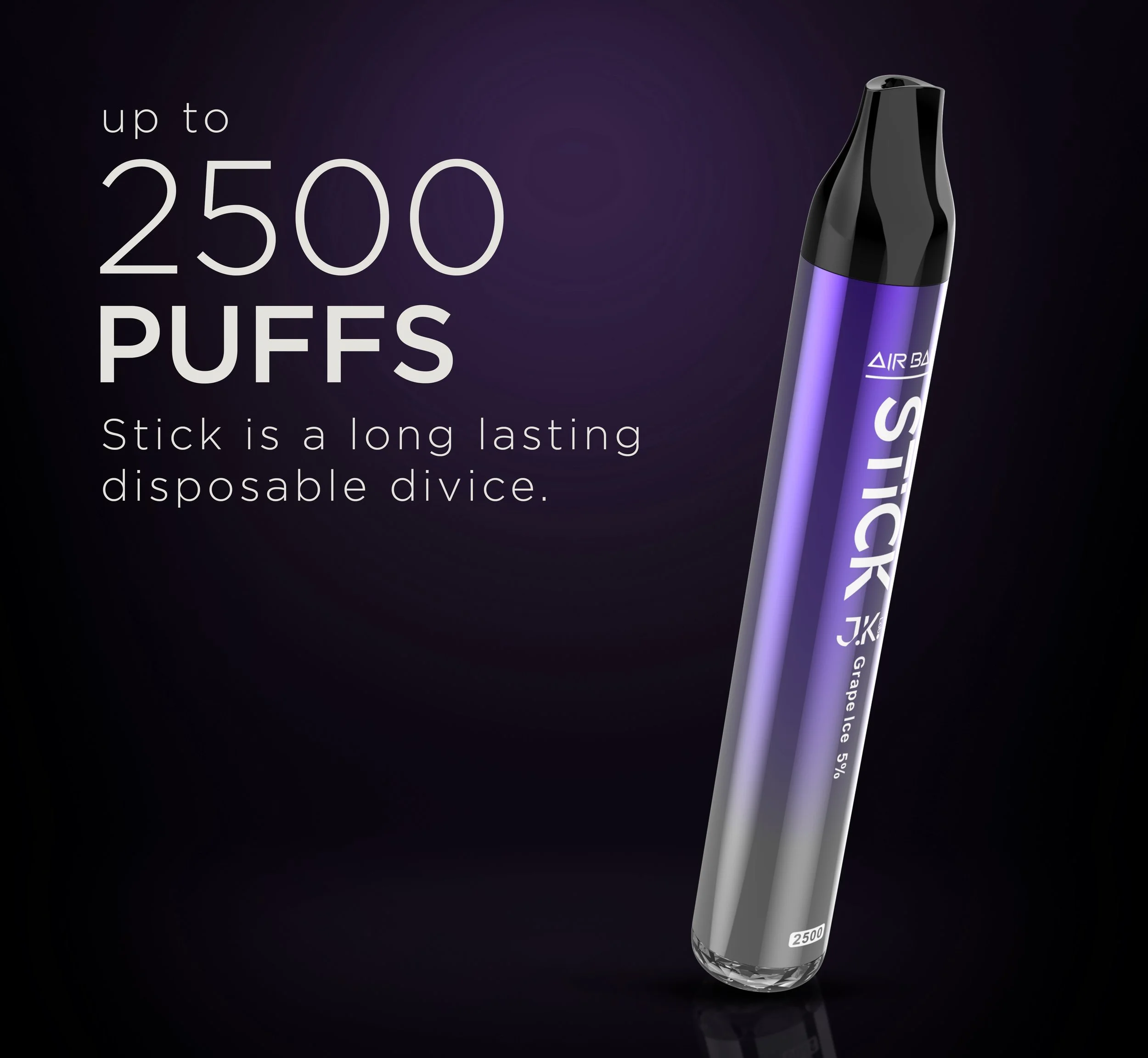 Entirely redesigned from both the inside and out, Air Bar STICK continues to be one of our top selling devices for a reason. Its sleek design, long lasting battery (without the need to recharge), and powerful flavor make this disposable device the perfect go-to for a seamless vaping experience.