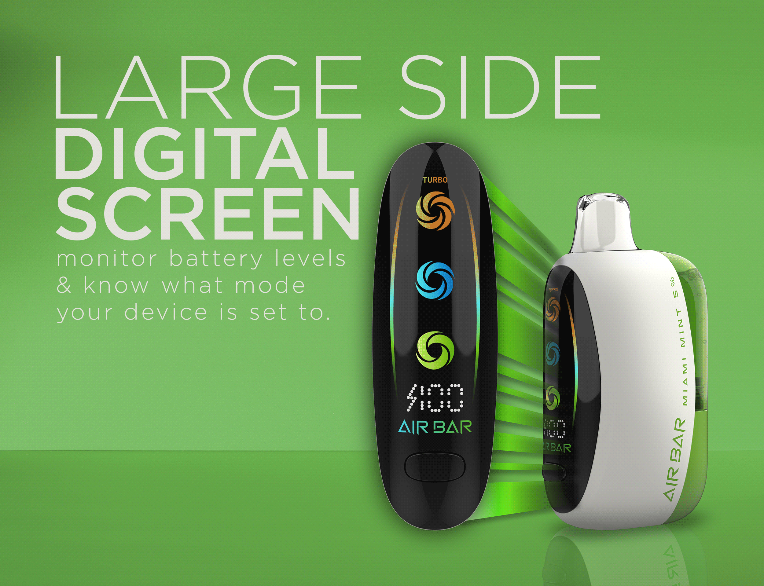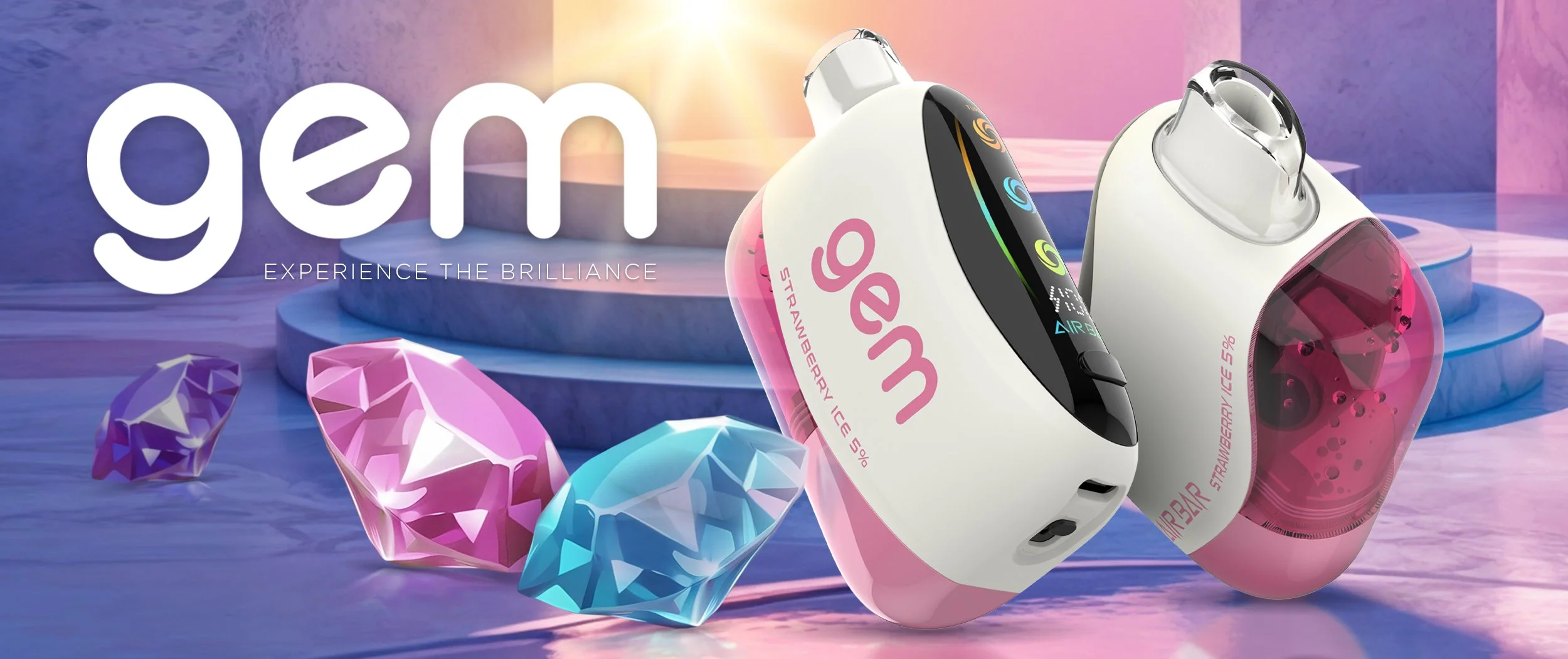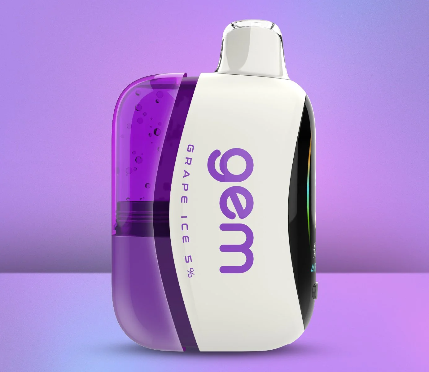 Air Bar Gem features a sleek design with a large digital side screen that provides real-time monitoring of battery life and mode setting. The innovative technology of a preheating coil and mesh coil ensures optimal flavor delivery and consistent vapor production throughout its lifespan. Gem features a clear tank for easy e-liquid monitoring and airflow adjustment making Gem a standout choice for vapers seeking a premium disposable experience.